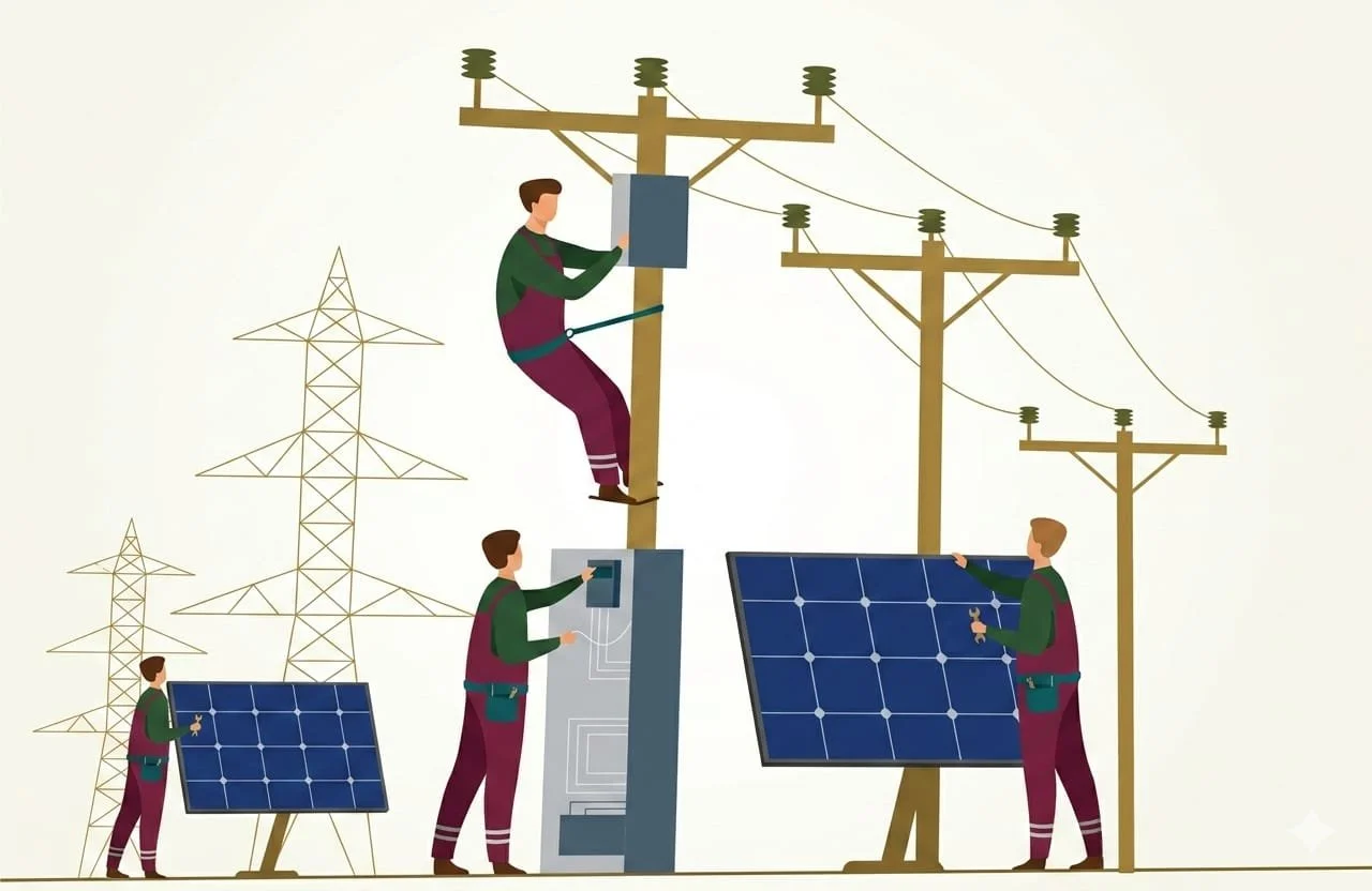 Hybrid Solar PV is a combination of batteries and a grid. Solar prioritizes existing load first followed by the batteries than by grid.